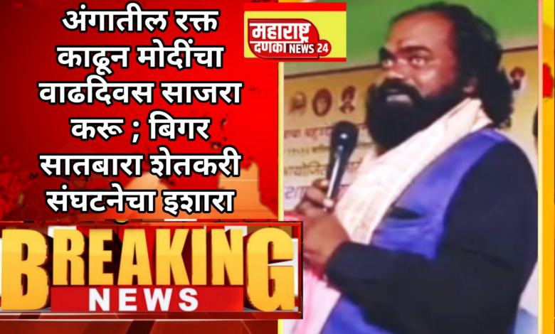 “राष्टनेता ते राष्टपिता” सेवा पंधरवड्यात सर्वांसाठी शेतीचे धोरण जाहीर केले नाही, तर पंतप्रधान नरेंद्र मोदींचा वाढदिवस बिगर सातबारा शेतकरी संघटना अंगातील रक्त काढून साजरा करेल, असा थेट इशारा संघटनेचे प्रणेते भाई जगदीशकुमार इंगळे यांनी दिला.