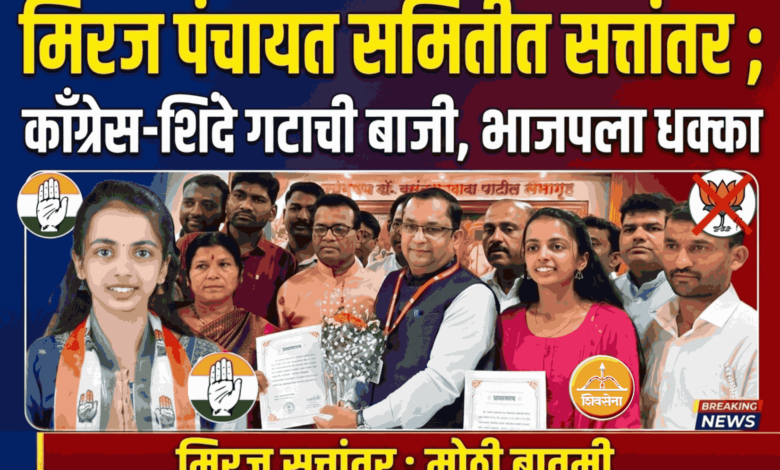 मिरज पंचायत समितीत सत्तांतर ; काँग्रेस-शिंदे गटाची बाजी, भाजपला धक्का