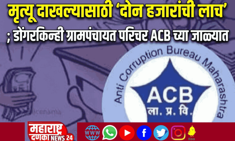 शेतजमिनीची हिस्सेवाटणी करण्यासाठी आवश्यक असलेल्या मृत्यू दाखल्यासाठी चक्क दोन हजार रुपयांची लाच मागणाऱ्या डोंगरकिन्ही ग्रामपंचायतीच्या परिचराला लाचलुचपत प्रतिबंधक विभागाने रंगेहात पकडल्याने तालुक्यात मोठी खळबळ उडाली आहे. सरकारी कागदपत्रासाठी नागरिकांना लाच द्यावी लागते, या प्रकारामुळे ग्रामपंचायत व्यवस्थेवर पुन्हा एकदा गंभीर प्रश्नचिन्ह निर्माण झाले आहे.